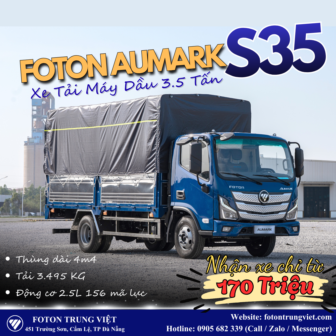 Foton Trung Việt là đại lý ủy quyền chính thức của Foton Việt Nam tại Đà Nẵng, chuyên cung cấp các dòng xe tải từ tải nhẹ máy xăng 990kg đến các dòng tải trung, tải năng và đầu kéo, đa dạng thùng và luôn có sẵn xe giao ngay.
