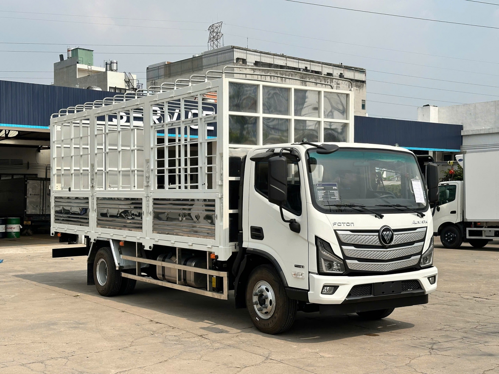 Foton Aumark 7T7: Thùng dài 5m2 giúp chứa hàng cồng kềnh hoặc pallet dài dễ dàng hơn. Hệ thống khung chassi dày, chịu tải tốt, phù hợp cho chở hàng nặng liên tỉnh, vật liệu xây dựng, hàng máy móc.